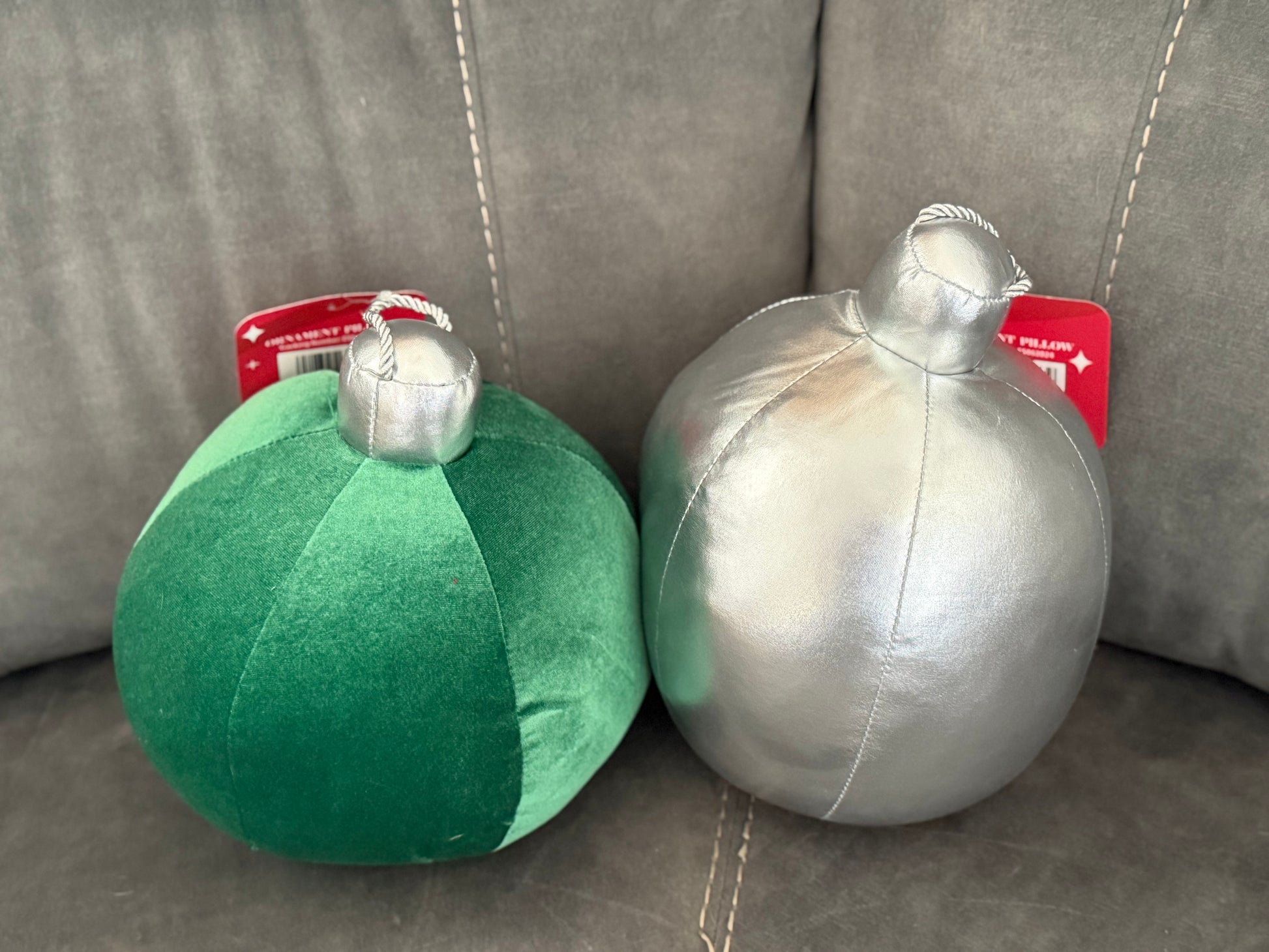 2 Silver And Green Ornament Pillow Plush 10"X 8”X8”Set of 2
