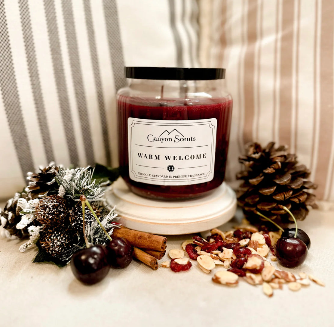 Welcome the aroma of luscious almond, delightfully mingled with sweet sugar cherries! Together with delectable cinnamon and French vanilla, Warm Welcome is sure to set the tone for any get-together!